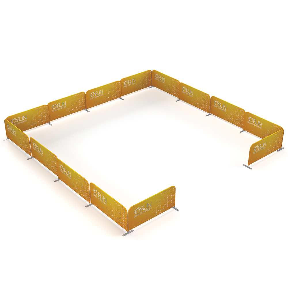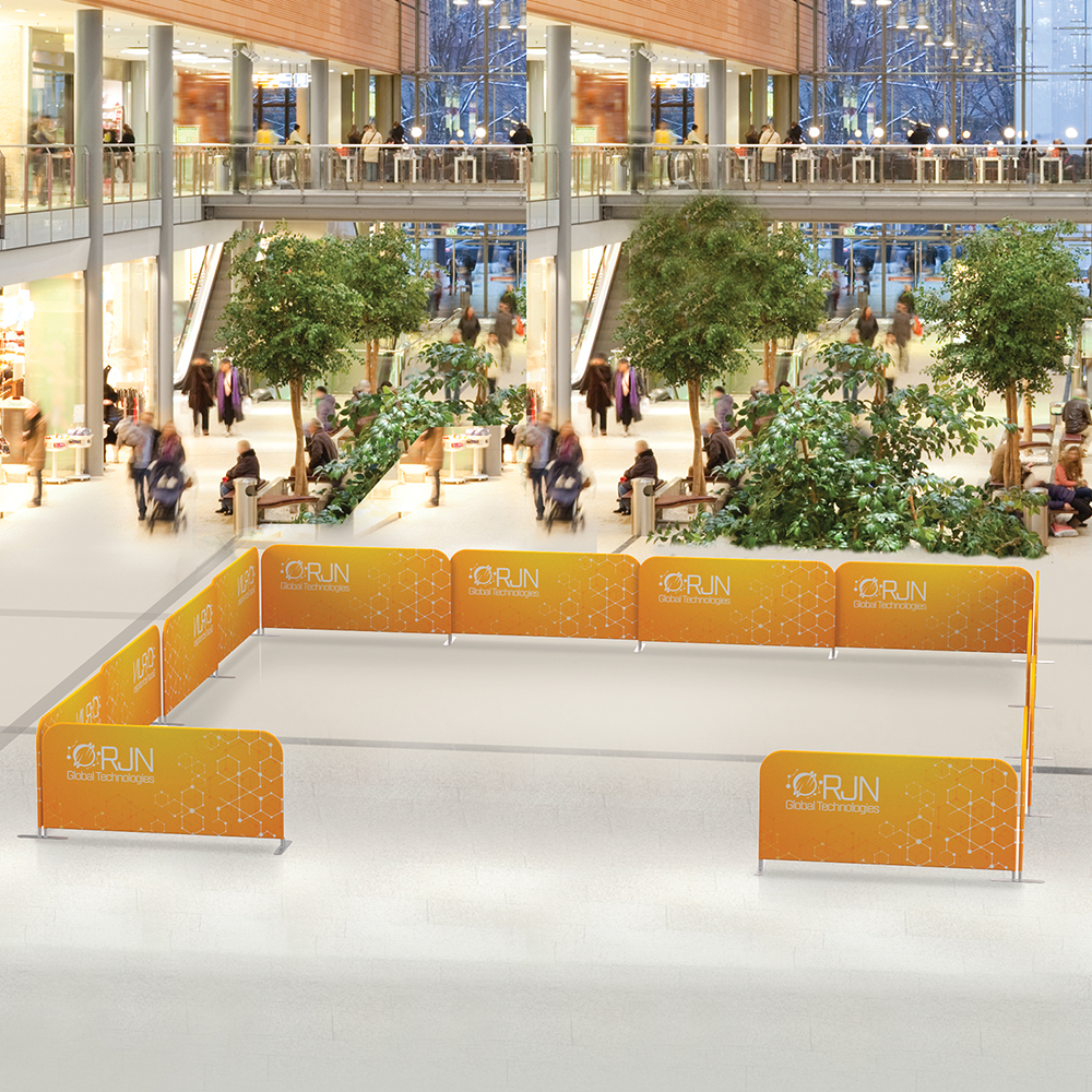 Use them as standalone units or connect multiple stands to create seamless partitions, continuous walls, or enclosed sections. 🔄 Each base features dual stems, allowing straight-line extensions or 90-degree angle formations for custom layouts. The focus stays on your branding while ensuring a professional and organized space.