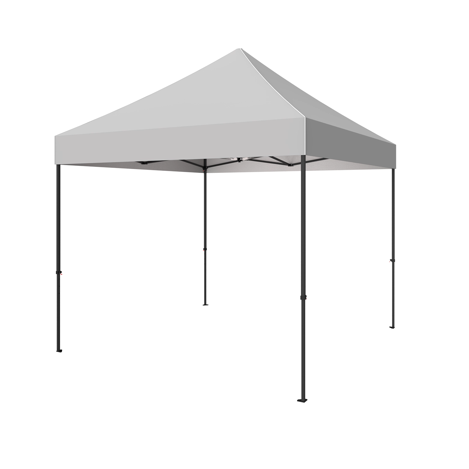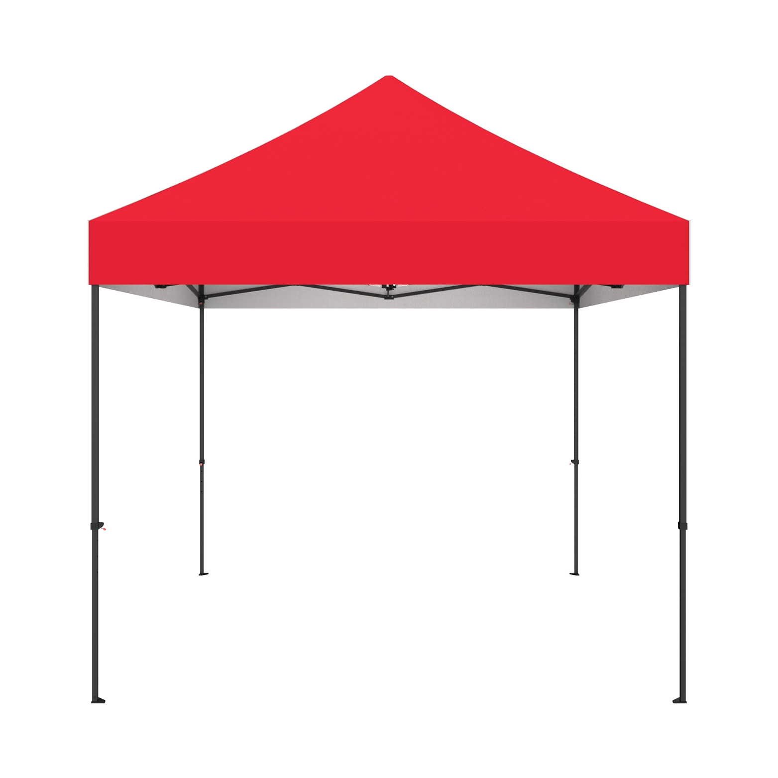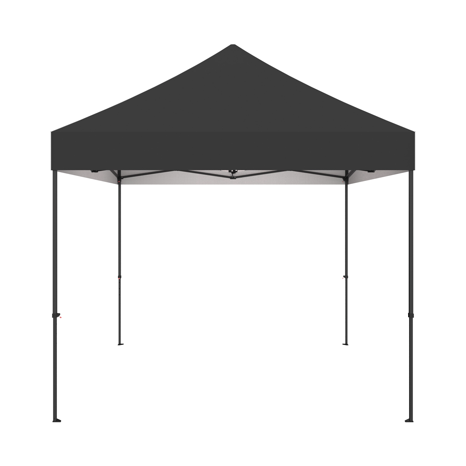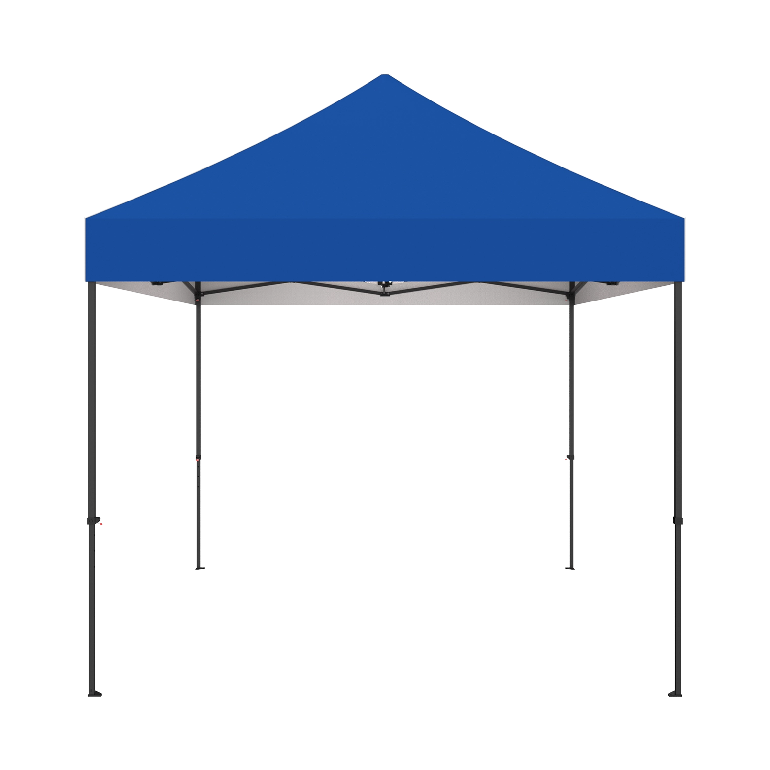Strong and stable, the 10ft Economy Popup tent features a square steel frame, making it an ideal display at any outdoor event. Stock and custom-printed graphics are UV and water-resistant, designed to withstand the elements. The 10ft Economy tent shades and protects up to five people. Long-lasting half wall and full wall options are sold separately. Strong and stable, 10ft Economy Popup tent features a square steel frame, making it an ideal display at any outdoor event. Stock and custom-printed graphics are UV and water-resistant, designed to withstand the elements. The 10ft Economy tent shades and protects up to five people. Long-lasting half wall and full wall options are sold separately.- Opens to base size of 9.8’W x 9.8’D