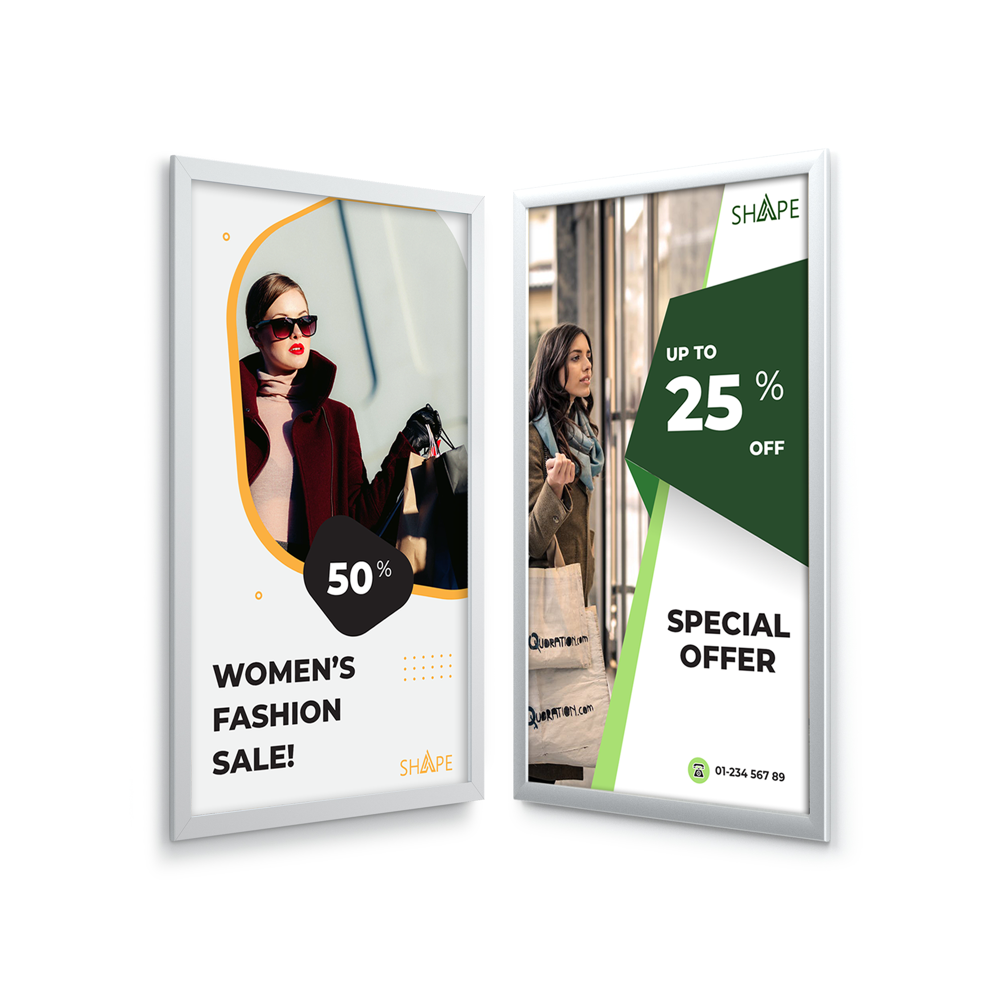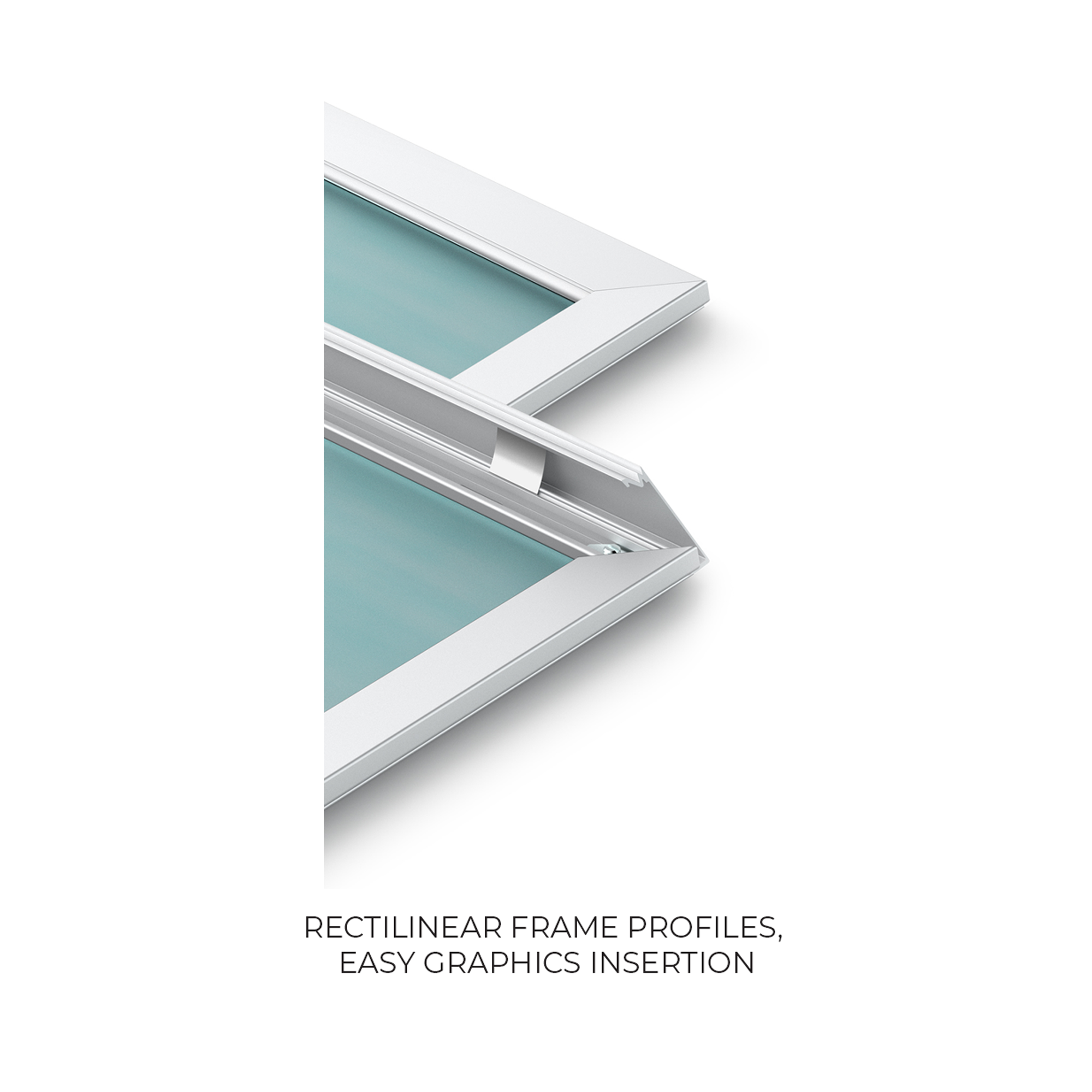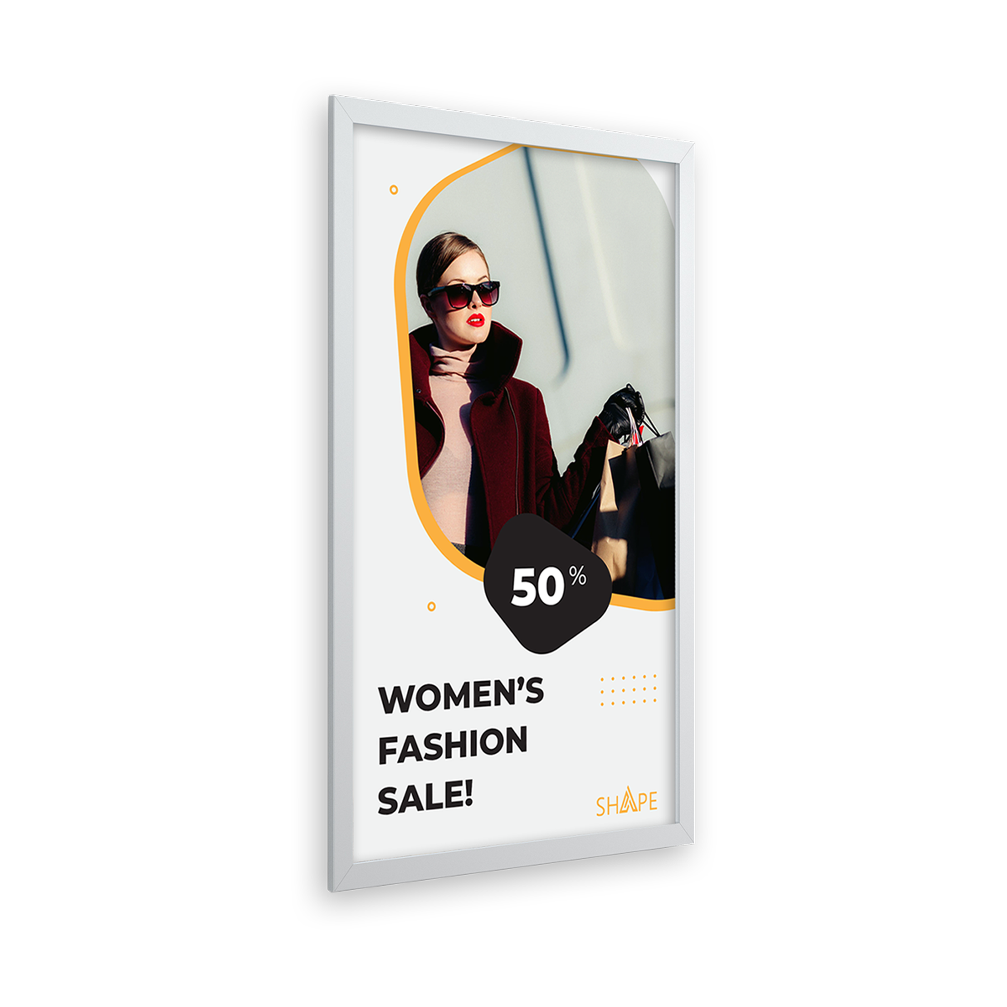 - Media: accepts posters and paper signs up to 1/32″ thick